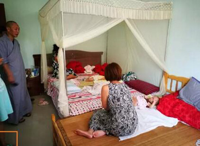 法师在“视察”婴儿养育的房间,两个阿姨正在照料婴儿。(图片来源:资料图)