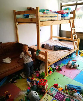 稍大一点的孩子的房间,满地是玩具,床上一个孩子正在睡觉。(图片来源:资料图)