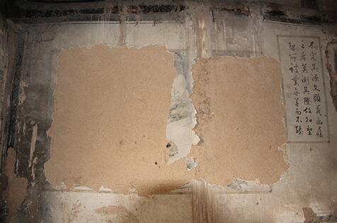 普照寺内一处被盗壁画,盗割者未能完整将壁画铲下。