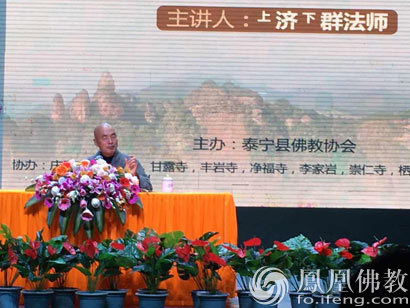 济群法师在讲座中(图片来源:凤凰佛教)