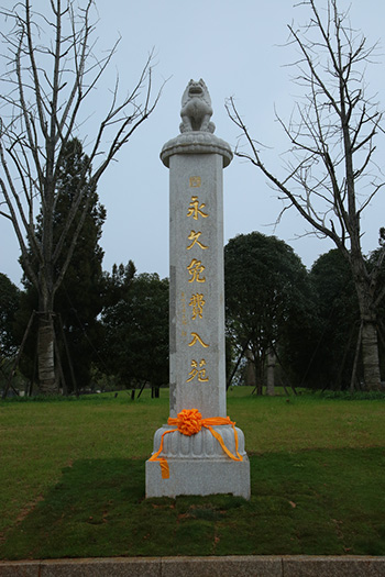 东林寺净土苑山门广场旁矗立的“永久免费”石碑(图片来源:凤凰佛教 摄影:东林寺净土苑)