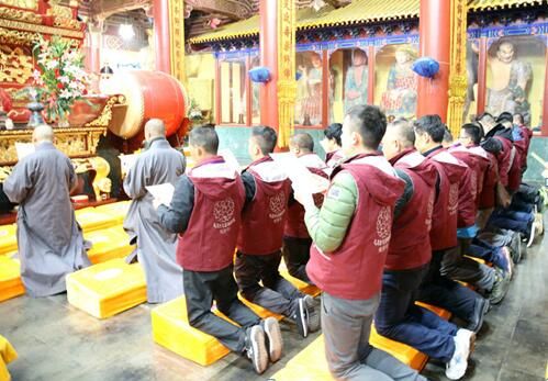 学员们在大雄宝殿内庄严回向(图片来源:凤凰佛教)