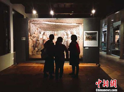 “敦煌壁画艺术精品高校公益巡展”现场(图片来源:中新网)