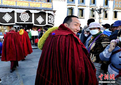 资料图片,僧人获得藏传佛教最高学位格西拉让巴。(图片来源:中国新闻网 摄影:李林)