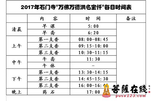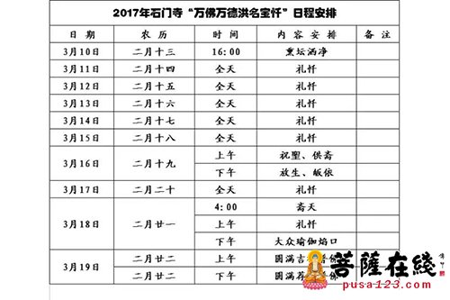 2017石门寺“万佛万德洪名宝忏”每日时间表