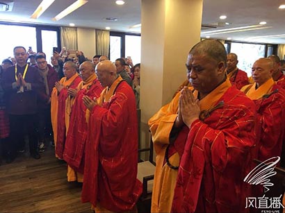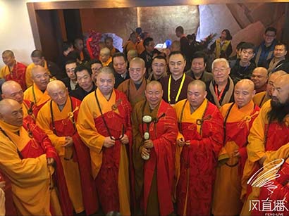诸位高僧大德向本如法师升座表示祝贺(图片来源:凤凰佛教)