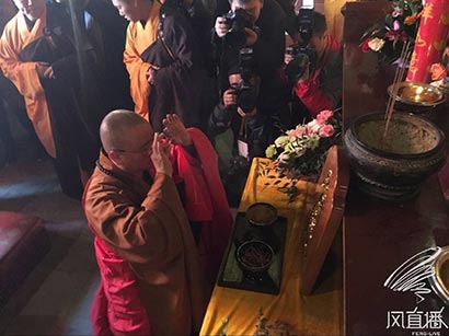 本如法师拈香、三拜(图片来源:凤凰佛教)