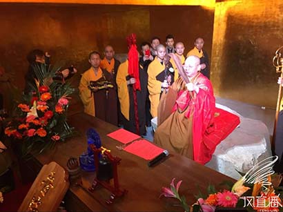 随着本如大和尚洪亮的“进”声,三门洞开,寺内钟鼓齐鸣,本如大和尚晋院后,分别在弥勒座前、韦陀座前、大雄宝殿拈香礼佛说偈。永信大和尚在法堂为本如法师送位。