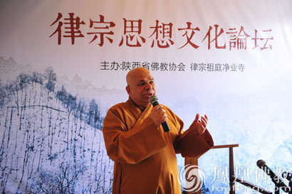 中国佛教协会副会长、少林寺方丈永信大和尚在论坛发言中说::历史上长安和洛阳的因缘很深。白马寺在中国历史上有很多第一:第一个和尚在这里出家;第一个和尚在这里受戒。少林寺的慧光律师,著有《四分律疏》,为佛教界广为认可和传诵,是四分律的先驱者,是南山律的雏型。道宣法师开创的南山律,就是在这个基础上创立的。近年少林寺举办过律学研讨会,并一直在传戒。希望净业寺今后也多多开坛传戒,振兴南山律宗,引领好风气,更好地利益社会,利益众生。