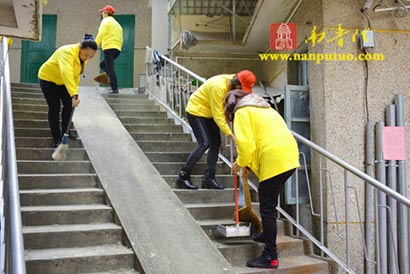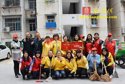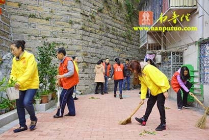 清理活动结束后,朱小梅书记等与义工们到南华社区关爱中心举行“南普陀义工服务社南华社区站”揭牌仪式。正如朱书记所说的“先干活,再揭牌”,为这块牌子加点汗水,再加点感情,相信今后南普陀义工服务社与南华社区的共建活动会越来越好。