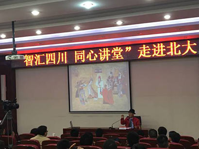全国政协委员、中央文史馆馆员、班禅画师尼玛泽仁4月22日走进北京大学,面向150多名北大学生学者,讲授《中国藏族绘画的历史及发展》。这是四川省委统战部“智汇四川•同心讲堂”的系列活动之一。