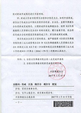 8.非江苏省所属佛教寺院的求戒僧人,必须取得其所在地省、自治区、直辖市佛教协会审签同意并加盖公章。
