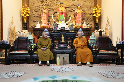 2017年4月13日下午,中国佛教协会副会长、黑龙江省佛教协会会长、哈尔滨极乐寺方丈静波大和尚,黑龙江省宗教事务局宗教一处处长王德光,省委统战部民族宗教处处长谢军等一行参访普陀山。中国佛教协会副会长、普陀山佛教协会会长、普济禅寺方丈道慈大和尚在方丈殿热情接待了静波大和尚一行。