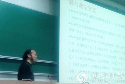 华中科技大学法学院郑平安教授主持讲座(图片来源:凤凰佛教)