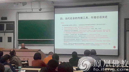 明贤法师此次讲座的主题关涉“佛教传播学”与“佛教护教学”这两大维度,内容涵盖了佛教在当今新媒体时代所经受的挑战、教界内外对这一挑战的认知与应对,以及佛教界如何在时代洪流中坚守传承并普度众生。不少长期关注法师求法生平与弘法实践的师生们表示,此番演讲汇集了其近年来在佛教正见传播与佛教舆情动态等领域的研究积淀,格局开阔、内容丰厚,在广度与深度、根本性与前沿性上都令人肃然感佩。