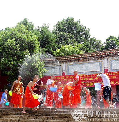 浴佛之后,云南佛学院变成了一片欢乐的泼水广场,参与的人们用泼水的方式传达着快乐、祝福!