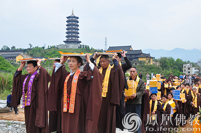 浙江丽水龙泉崇仁寺隆重举行了佛像、经卷、珠宝等装藏并圆满封塔盛会。(图片来源:凤凰佛教)