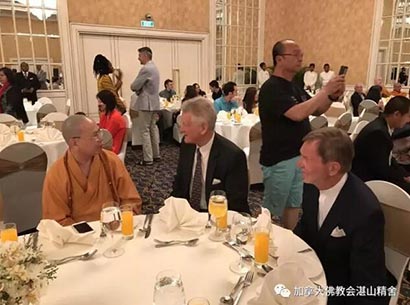 当晚,诸嘉宾在斯里兰卡首都科伦坡的谢尔顿大酒店举行各国代表的欢迎晚宴,有来自世界各国的佛教领袖,大家共聚一堂,分享佛陀感人的故事。