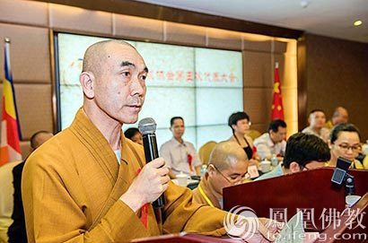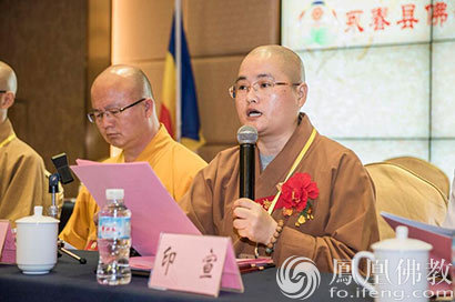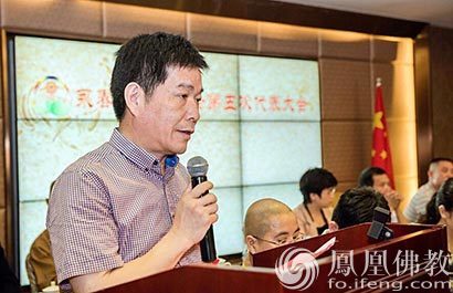 福建省泉州市永春县佛教协会会长印宣法师作上一届工作报告(图片来源:凤凰佛教)