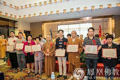 向永春县佛教协会顾问、荣誉会长颁发证书(图片来源:凤凰佛教)