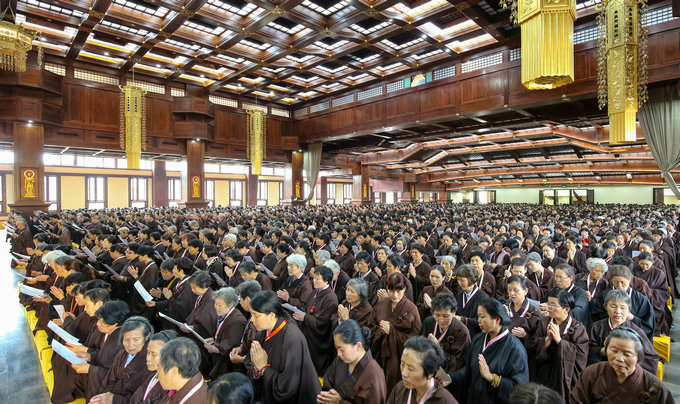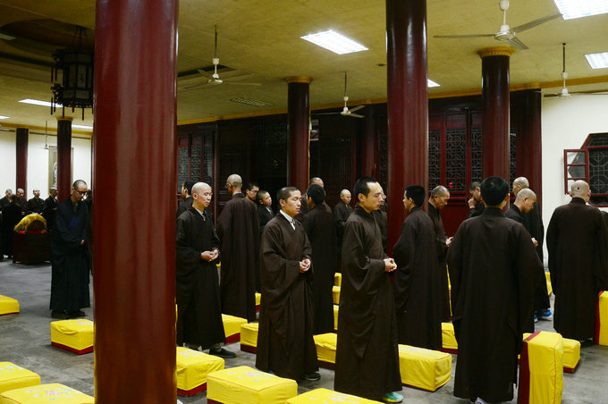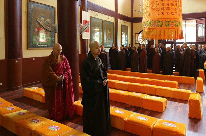 青莲念佛堂里,经行队伍整齐庄严
