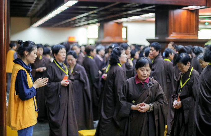 香光讲堂是女众居士精进念佛堂口,多数人坚持到了最后。监香慧炤法师介绍说,这次参加精进念佛的女众居士中,甚至还有未皈依的信众,虽然尚未皈依,但是她们在众多精进师兄的标杆力量影响下,比样学样,念佛能够持之以恒,非常有自制力,有精进心!