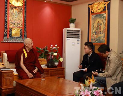 安曲活佛正在接受《中国西藏》杂志、中国西藏网专访(图片来源:中国西藏网 摄影:陈卫国)