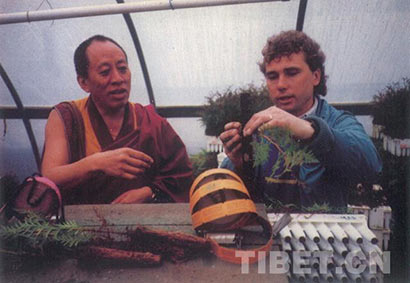 安曲仁波切在国外考察苗圃培育技术(图片由安曲活佛提供)