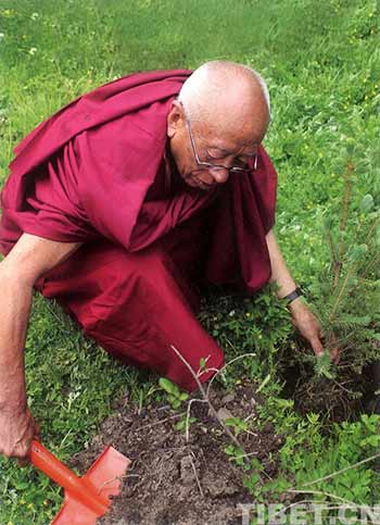 仁波切正在种植树苗(图片由查理寺管会提供)