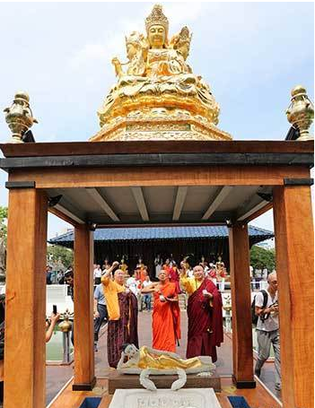 斯里兰卡当地时间2017年5月11日上午10时,中国佛门泰斗本焕长老真身舍利永久安奉暨四面观音像开光法会,在斯里兰卡首都科伦坡岗嘎拉玛寺水上戒台隆重举行。