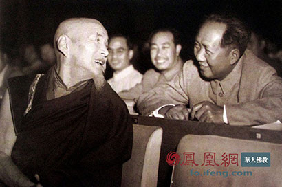 图为毛主席与喜饶嘉措亲切交谈。(图片来源:凤凰佛教)