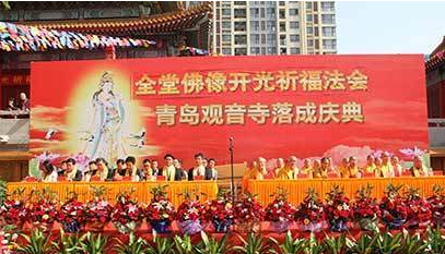2017年5月7日,上午9时,山东省青岛观音寺落成庆典暨全堂佛像开光祈福法会隆重举行。青岛市市委统战部、青岛市宗教局、市北区委统战部、市北区人大常委会、市北区政府、市北区政协委员会等相关政府部门领导与会;中国佛教协会副会长圣辉大和尚,中国佛教协会咨议委员会副主席怀善大和尚,山东省佛教协会会长仁昌大和尚,山东省佛教协会副会长、青岛市佛教协会会长心见大和尚,青岛市佛教协会副会长、市北区佛教协会王圣瑛会长以及高僧大德、居士代表、社会各界代表800余人参加盛会。来自全国各地的诸山长老参加了庆典并为观音寺大雄宝殿、弥勒殿、观音阁等大殿开光祈福。