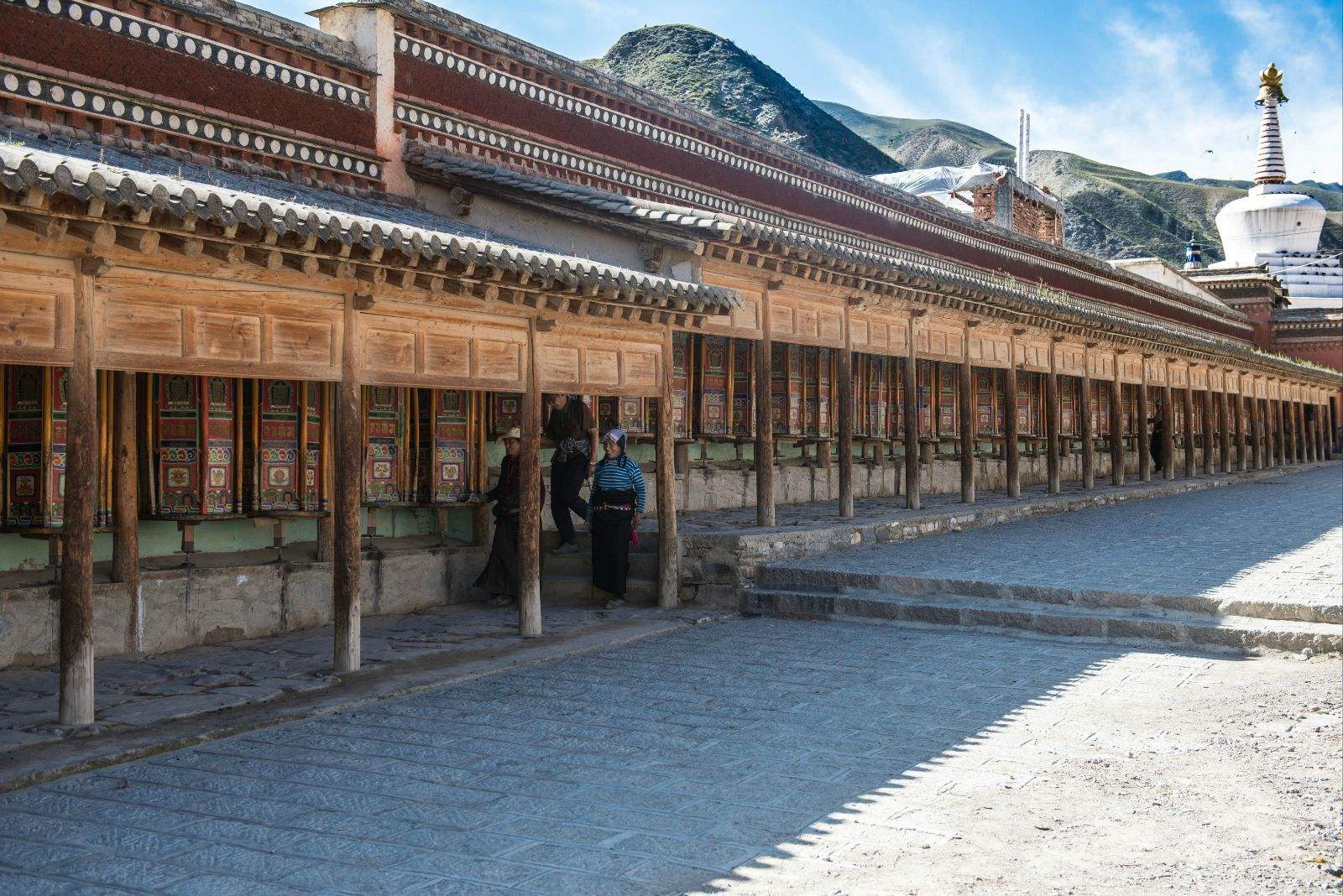 从拉卜楞寺出来后,信众开始转经。拉卜楞寺拥有世界上最长的转经廊,共有一千七百多个经筒,环绕整个寺院,绵延3.5公里长。转完所有的经筒,大约需要一个半小时。