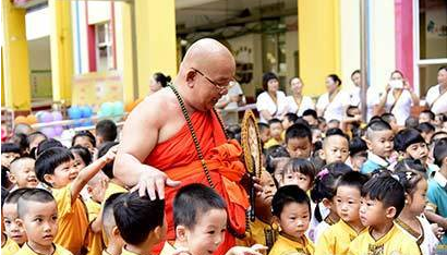 6月1日一大早,帕松列龙庄勐带领总佛寺僧团来到景洪市民族幼儿园、允景洪小学为师生们送去“六一”祝福,并诵经祝福在校师生吉祥平安。帕松列龙庄勐以个人名义为各处捐款一万元,云南省佛教协会副会长帕祜巴罕听、云南省佛教协会副秘书长都三说等南传佛教僧众随同参与捐助活动。