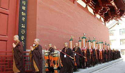 三坛大戒法会:初坛传授沙弥(尼)戒、二坛传授比丘(尼)戒、三坛传授菩萨戒,因此称为“三坛大戒”。初坛传授沙弥尼戒是整个传戒法会中事务最繁忙的,也是三坛传戒中用时最长的。