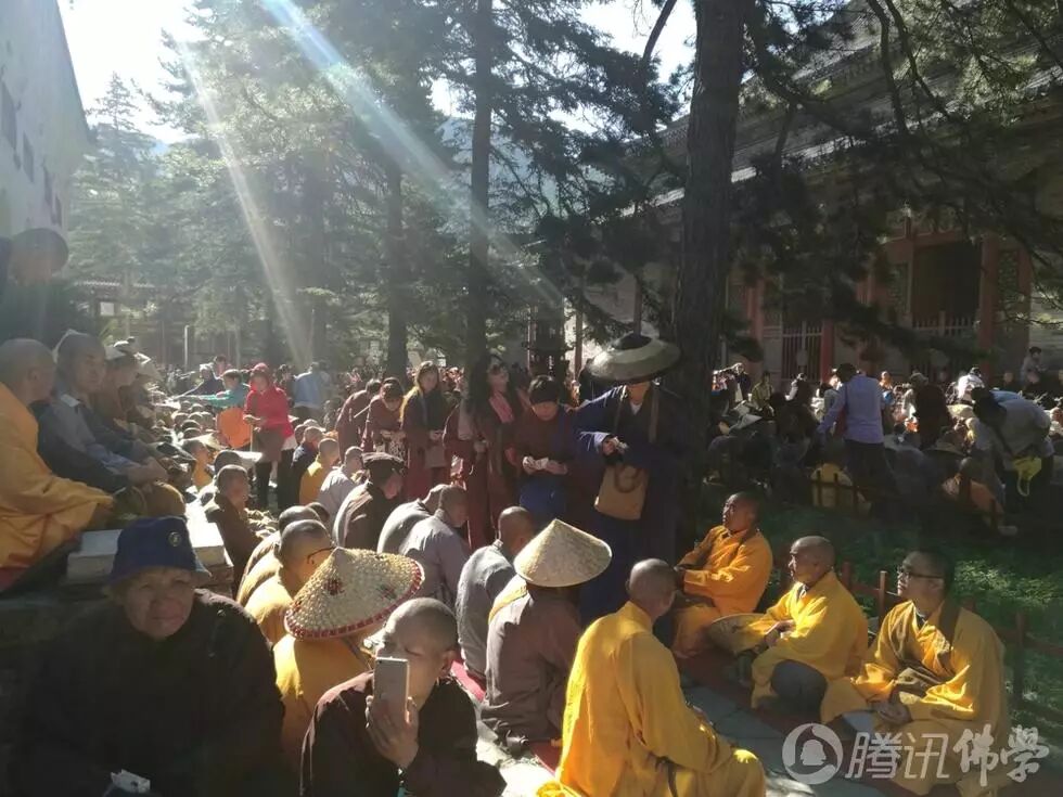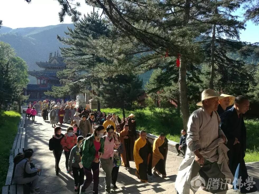 2017年6月25日(农历六月初二),五台山碧空万里,佛光普照,来自五湖四海世界各地的信众近万人,齐聚大显通寺共同诵经祈福,祝贺梦参长老103岁寿诞,祈愿长老法体安康,长久住世!(摄影:焦瑾琦)