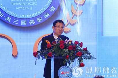 中国国家宗教事务局副局长蒋坚永在致辞中指出:早在上世纪二十年代,太虚大师赴美弘法,五十多年前又有宣化上人、乐渡长老、诚祥长老、性空长老等老一辈高僧漂洋过海,奔赴北美,翻译佛典、讲经说法、兴建道场,经过他们的辛勤耕耘,汉传佛教在北美生根发芽,硕果累累。在座的达义法师、品道法师等为代表的新一代佛门龙象,接过衣钵,传承法统,弘扬佛教优良传统,弘法利生,兴办慈善、发展教育、繁荣文化、安定人心,服务社会、造福人群,扎根当地、融入主流,佛教社团与道场不断增加、社会影响不断扩大,佛教在北美的传播取得了长足的发展。