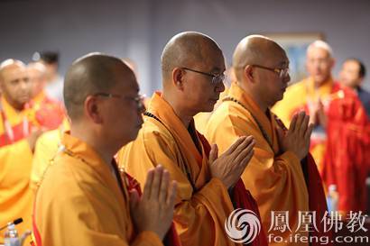 中加美三国代表团举行了传统的佛教仪式,三国高僧诵经祈祷世界和平。