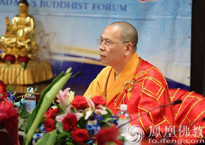 美国西来寺慧东法师在闭幕式上致辞,他说:当今的时代,佛教正在全球范围内兴起。在中国,佛教在经历了近代时期的衰落和断层以后,正在全面地复兴;在美加等西方国家,越来越多的人开始禅修并学习佛法。国与国之间的利益纷争反而越来越多,恐怖分子在世界各地制造着仇恨。在这样的环境里,佛教作为世界上越来越多的人的信仰和希望,更应该发挥它慈悲、包容、清净、平和的特性,为消除世间的对立,增进人与人之间的和谐与友爱而有所作为。因此,这次的中、加、美佛教论坛适逢其时,“圆融中道,持久和平“的主题也尤为重要。家师星云大师认为,中华文化的复兴,佛教不能缺席。而现在,中国的经济、文化、宗教的发展是全球发展的一部分,所以佛教也不能够缺席于全球的发展。