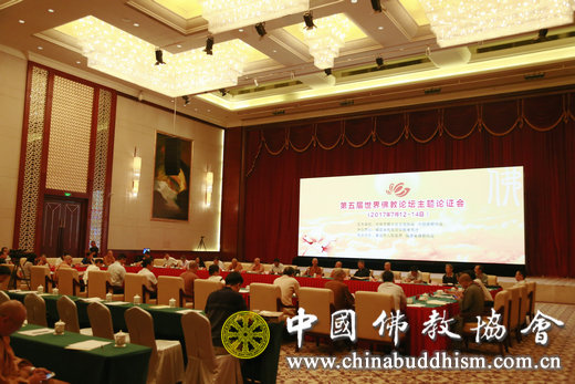 世界佛教论坛由两岸三地佛教界于2005年春共同发起,宗旨是为热爱世界、关爱生命、护持佛教、慈悲为怀的有识之士,搭建一个平等、多元、开放的高层次对话、交流、合作的平台。世界佛教论坛每三年举办一次,目前已成功举办四届。本次主题论证会是第五届世界佛教论坛前期筹备工作的重要会议。