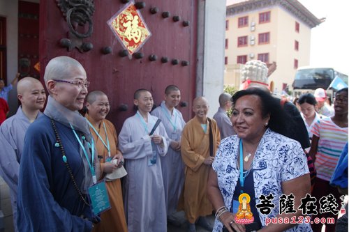 善行天下,妙法人间,7月30日上午11时,“联合国代表团2017中国行”一行前往湖北妙乐寺参访,妙乐寺住持演总法师在山门前迎接联合国参访团一行,并陪同他们沿妙乐寺中轴线参观寺院。演总法师用流利的英文向参访团一行介绍妙乐寺的寺院规划与布局,演果法师用英文全程介绍寺庙各殿堂功能,参访团一行无一不为眼前这座“南国第一寺”的盛景所折服。