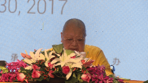 妙乐长老感谢联合国代表团不远万里来到妙乐寺