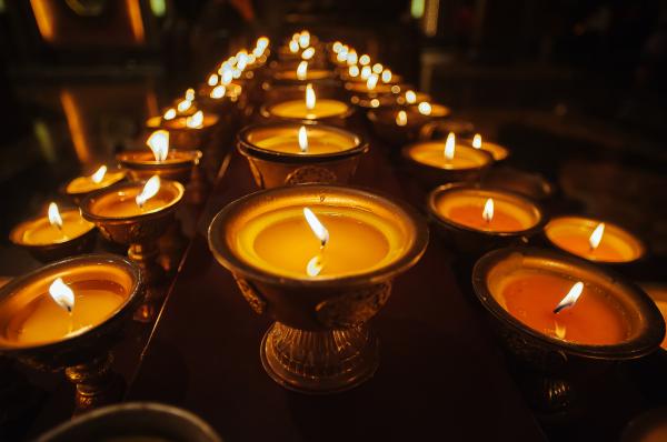 “灯”是佛门六种供具之一,用灯来供养佛菩萨三宝。以“一灯能破千年暗”为象征,通过“灯灯相传,传灯无尽”传递美好的愿望。点亮了真理和慈悲的明灯,从此,苦海里的众生有了希望。象征智慧光明的心灯,象征了佛法的薪火相传。