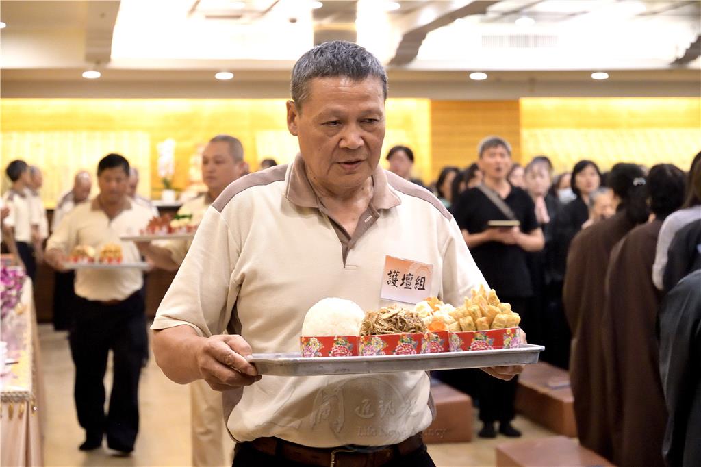 圖說:普門寺孝道月燄口修持,金剛護法幫忙搬「供菜」。