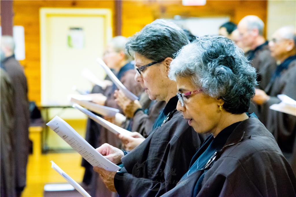 首屆北美英語弘法人才培訓課程,每天早、晚都由美國各地道場輪流帶領學員禪修及晚課唱誦。針對不同地域的信眾,法師契理契機的調整梵唄唱誦,是本土化順利開展的關鍵因素之一。