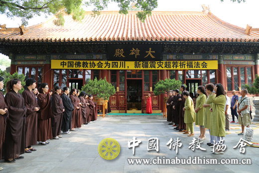 1、2017年8月10日上午,中国佛教协会在北京广济寺举行四川、新疆地震灾区超荐祈福法会。学诚会长因公外出,我会副会长、广济寺住持演觉法师受学诚会长委托,主持法会并主法。