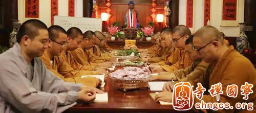 2017年8月21日晚,上海宁国禅寺全体法师于法堂共同学习《印度佛教史》。