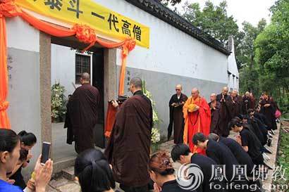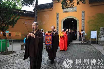 四众弟子迎请名学长老灵骨舍利至塔院(图片来源:凤凰佛教)