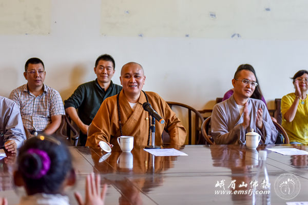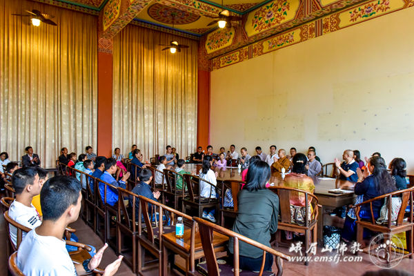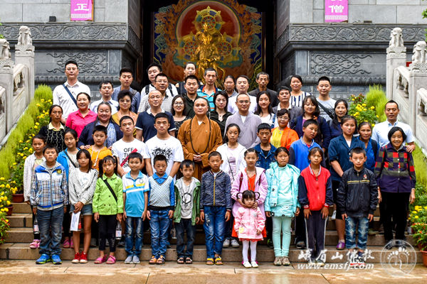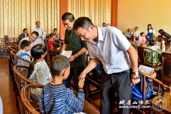 金秋送爽,丹桂飘香,九月既是收获的季节,也是同学们新学年的开始。2017年9月16日,峨眉山行愿慈善事业基金会在峨眉山大佛禅院举办“一对一助学帮扶见面会暨2017年秋季助学金发放仪式”。出席此次活动的法师和嘉宾有:峨眉山佛教协会会长、峨眉山行愿慈善事业基金会名誉理事长永寿大和尚,峨眉山佛教协会副会长、基金会理事长满霖法师,基金会秘书长昌林法师,基金会出纳心诚法师,峨眉山市龙门乡中心小学校崔鸿斌校长,乐山市中区剑峰乡、罗汉镇团委的老师,爱心人士二十余人,以及受助的二十位学生及家长。