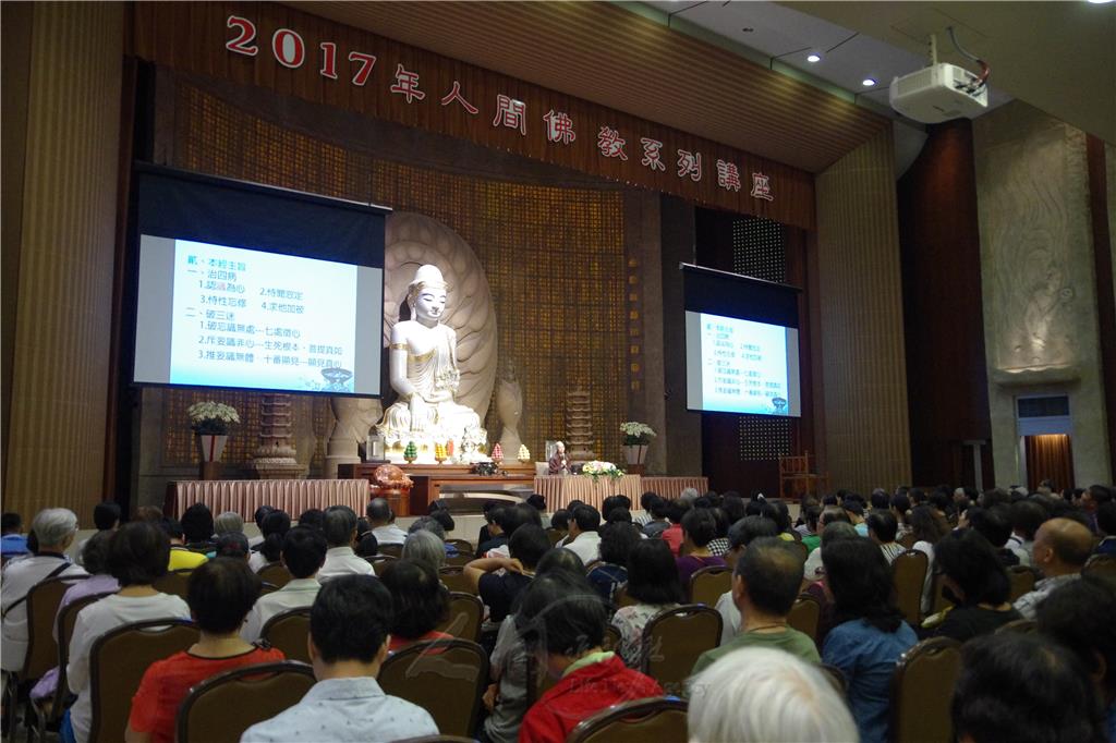 圖說:佛光山電子大藏經主任永本法師9月24日以「楞嚴喻語──佛性與無明」為題,指引佛光山南屏別院600多位信眾,從《楞嚴經》的譬喻中,認識生死根本,邁向解脫之道。